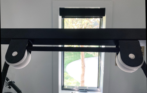The back of the aluminum frame has two simple rollers that allow the elastic cord to move.