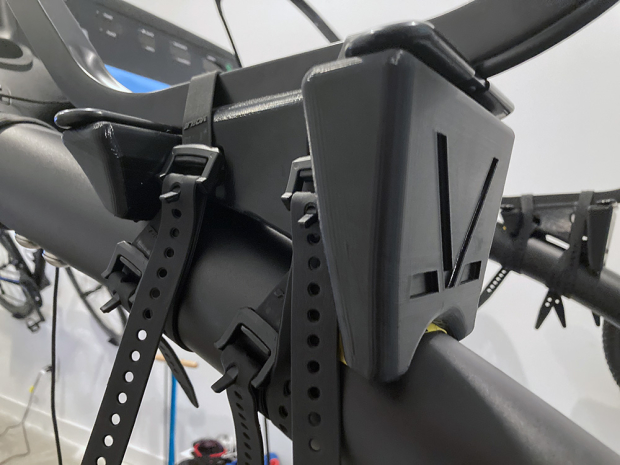 This is a closer look at the 3d printed adapter for the Woodway 4Front treadmill. Basically held in place with 4 straps total on each side, and I added silicone strips at the base to hold it even more securely since I am heavier than the pros I mentioned earlier.