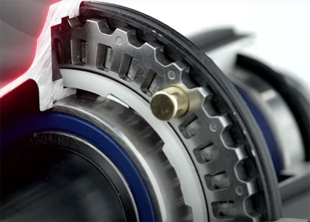 Above is the style of hub you’re probably used to owning. What you see here are variously called cassette assemblies, or driver bodies, and they are generally interchangeable. They share the same inners, but the cassette body is either a Shimano style or perhaps a SRAM XDR style (if it’s for 12 speed), and it's SRAM XDR driver body you see used in the DT Swiss video above. These driver bodies above have 3 and 4 pawls respectively, or up to 6 pawls, and you can see both a 3 and a 4 pawl driver body above, made by different wheel brands. This is the design these new ratchet-style hubs are gradually replacing.