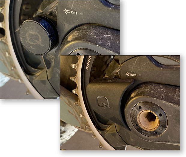 This happened just a few days ago. Also last week my Wahoo ROAM head unit displayed N/A where the power displays. My head unit was not waxing sarcastic at my lack of power, and there wasn’t anything wrong with my head unit. The battery in my Quarq power meter went dead (after 2 years of use). In the image above is where the battery goes in my Quarq power meter, and the image below that is what the rest of that process looks like: The battery is fixed by the battery cap (which screws on by hand), and a cosmetic cap (no tools to change this battery).
