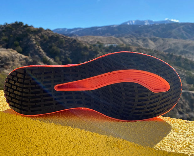 The rocker is plainly, clearly evident. It doesn’t whisper; it shouts. What does it feel like? When I put a new orthotic in my shoe, and I feel the pressure under the arch, it’s like that. When you run in this shoe, it’s like somebody’s behind you pushing you forward after every footstrike. It’s like there’s a motor in the shoe, rotating you forward. And, look, I’m saying this as a person who runs in HOKAs – rocker-driven tech – every day. HOKA never made a rocker that rocks like the rocker in the MetaRide. It makes this – a 10oz shoe – feel like an 8oz shoe in terms of how quickly you move from foot strike to toe-off. Just, instead of moving you quickly through your ground contact phase because of less weight, it does it through geometry. ASICS has gotten rid of the features in the shoe that impede that transition.