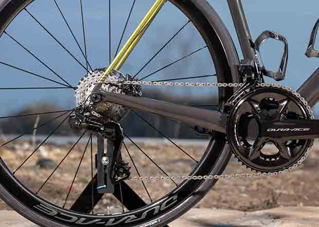 I had the beginnings of a Shimano 9200 groupset and I needed only to fill in the blanks. Calling in every favor I had, making an ornery pest of myself, waterboarding every friend I had in the business, buying the odd part here and there, with some big time help from Shimano, it took me a couple of weeks but I got almost everything in. I really wanted Andy to be on that groupset, Dura Ace 9200, or Ultegra 8100, because I wanted absolutely bombproof electronic shifting on a bike that was easy to assemble and travel-friendly.