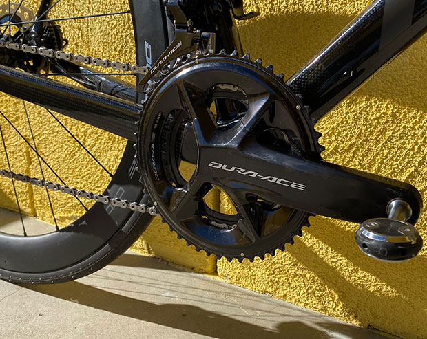 It’s Speedplay pedals on this bike, because both Paul and I are Speedplay devotees (for road), and Andy wouldn’t dare ride anything else.