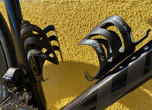 If you look at those water bottle cages, yes, they look a lot like XLAB Gorilla cages. They are, basically. It turns out there’s a lot of cross-compatibility between tri and gravel tech. For example, gravel figured out pretty quickly that the idea that triathletes had for where to stick food – on the top tube – was a big improvement on the jersey pocket. Road racers are a little too precious for top tube storage, so this tech jumped from tri right over road and into gravel. Gravel and bikepack enthusiasts also like the idea of bottles not jumping out of cages while riding, as do triathletes. So, much of what XLAB made for tri had utility for gravel, but gravel needs its own brand. Hence Dawn to Dusk, a brand that has a lot of curiously XLABby-like products. It may take an extra few newton-meters or watt-fractions to pull a bottle out of this cage, but for Andy’s use I just want the bottle to stay put so a Kaptive 14 bottle is on both down and seat tubes.