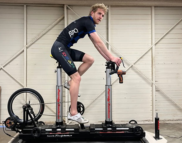 I will only say this about Andy, to give you a sense. As a sophomore in high school he was on the state meet podium in Arizona. In swimming. He also won the NCAA Division I indoor 3000 meters in 2018. That’s in running. He’s a 3:58 miler and has a track PR of 13:21. So, there’s some promise. Back to the bike, which is a triathlon bike because Andy is turning directly and, for now, only to draft-legal Olympic-style racing.