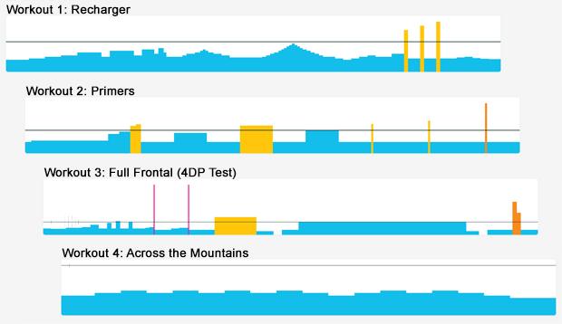 SYSTM has a third plan that sets the foundation for the primary plans above. Instead of a single FTP test workout, like most training software, the Fitness Testing plan is a week of workouts designed to measure the SYSTM’s four power dimensions. This is a hard week, but the mini plan is essential to establishing all of the interval thresholds that the workouts use. The workout that counts is “Full Frontal (4DP Test).” It is 58 minutes long and looks like a blend of a traditional 20-minute FTP test with some high-spike intervals. This is bookended by three other workouts that help set you up for a successful test. This is a rough workout (and week), but it is worth it to get the most out of of SYSTM. You could jumpstart your training and just do the Full Frontal workout, but you might not get the most out of it.