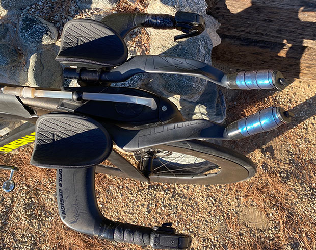 It’s not even the bar, per se. It’s just the extension. It’s Profile Design’s 43ASC, and this bar is mounted on a Wing 20c+ pursuit bar, which is in turn mounted on a Quintana Roo PRsix from a couple of years ago. I’m going to write one or two follow ups on this extension, and the brackets you can mount it on, and the possible pursuit bars, because Profile has again built a system of brackets and sub-assemblies that one can mix & match, depending on the products you already have if you like any of these products as retrofits.