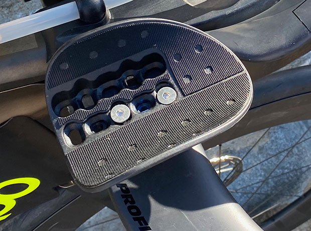 If you’re a dedicated reader on our Forum you might have seen this extension, because it was shown at the Eurobike show last month. Here’s that post and you’ll see this extension mounted on a new (as of yet unreleased) bar/stem combo called the Wing Ultimate. For me, the Wing Ultimate is of limited utility and the bike I’m showing here is a case in point. That system won’t mount on a PRsix or, at least, my PRsix. If it did, I’d have to get a different Profile Design hydration system. In short, there are too many problems to solve.