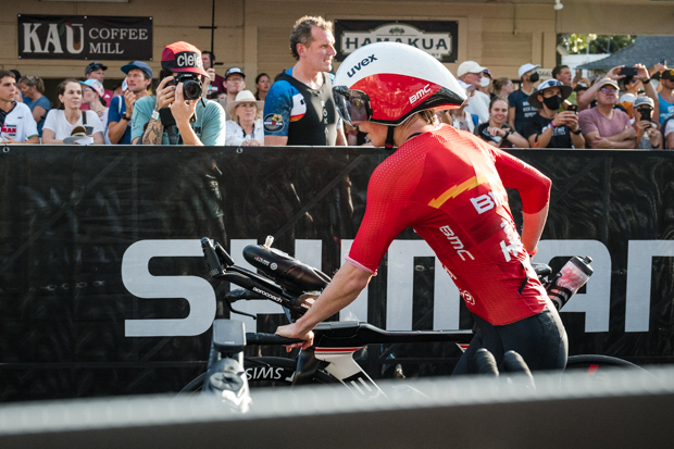Ryf, who came out of the water almost 7 minutes behind Charles-Barclay, pedaled hard for the entirety of the ride, including her patented move following the turnaround in Hawi.