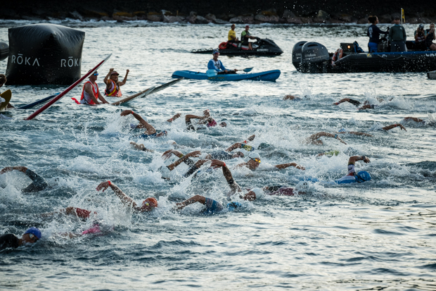 The frenzy of the professional swim start.