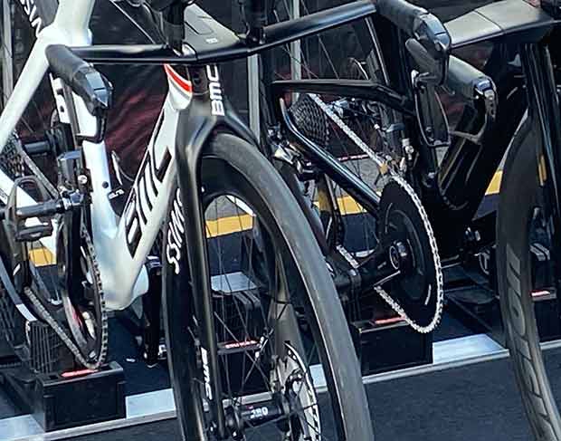 There is a new Schwalbe with a gray tread and sidewall and a red heat stamp and I think it was a prototype. I could not see a label, as hard as I looked, with a model name. But lo! When perusing the images taken by a camera I finally did see a tone-on-tone graphic showing the model and you can see it above, on Daniela Bleymehl’s tire. Sebastian Kienle is the smartest gearhead I know among the pros and he was riding a set of these. So were Patrick Lange, Florian Angert, Maurice Clavel, Braden Currie and Daniel Bakkegard.