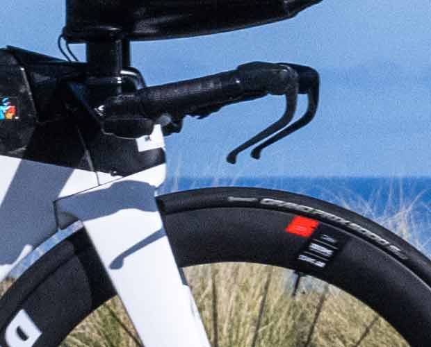When T.O. goes tubeless you know the pro field has capitulated. To be sure I haven’t spoken to Tim, but I’m pretty darned sure it was a Continental GP 5000 TT graphic – variously called a hot patch, hot stamp, heat stamp – I saw on the side of his tire. This is a tubeless tire – there is no tubed version – and these are (according to my notes) what he had mounted on his Bontrager 75 wheels and I can’t imagine him riding those tubed (though riding that tubeless tire tubed is, from what I hear, exactly what Magnus Ditlev did). Tim was one of the few tubular (sew-up) tire riders last time in Kona.
