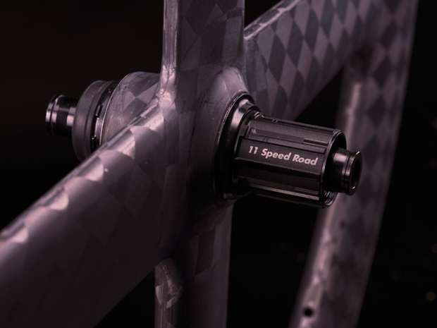 The wheel is built from a bidirectional laced ultralight carbon that is encased with a 18K carbon weave. For the uninitiated, that’s the cool looking chess/checkers looking squares. The wheel feels very solid. The 4 carbon spokes are linked in the middle by a CADEX R3-C Hub (Front) and the CADEX R3-C40 Hub (Rear) both with internal CADEX Ceramic bearings. It’s a relatively standard thru-axle set up: 12×100 front, 12×142 rear.