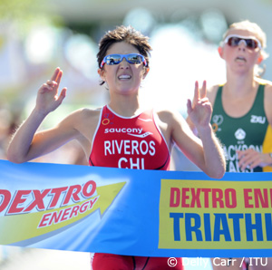 Barbara Riveros Diaz stormed past Emma Jackson with 200 meters to go to take the win at the ITU Sprint World Championships in Lausanne, Switzerland. The always consistent Andrea Hewitt finished third.