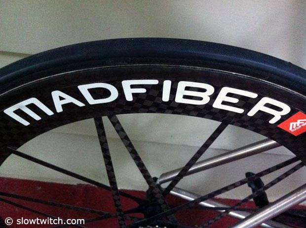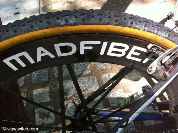 But more time with these Mad Fiber wheels was spent on the road with Challenge Triathlon tires mounted on them, and the trusted size ML Litespeed Ghisallo with a stock 2010 SRAM Red group, standard Look Keo pedals, Profile Design carbon cages and a Quarq power meter weighed in right at 13.2 pounds with the Mad Fiber diet. I felt even more confident on this setup but that is of course due that I know this bike very well. The giant TCX Advanced SL was new to me in every aspect, while this Litespeed has been in my hands for many years now with some slight modifications along the way. So that allowed me to focus on the only component that is indeed new and different. These wheels are very fast for sure and the rate of acceleration is impressive. I for one am not the type of rider who is overly concerned about having the stiffest ride, and thus I also had no issue with the Mad Fibers along those lines. But I did let other folks ride them who are a bit more anal in terms of "stiff is better," and they too had no issue, and if anything seemed positively surprised. Even under hard cornering the wheels are very steady and gave me a good sense of confidence. But you better go fast and with a bit of positive attitude when you ride wheels like these.