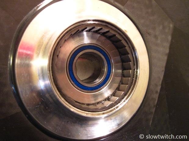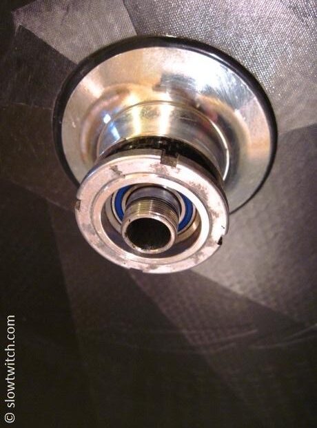 People often ask – how do you know when to replace a bearing? What’s the scientific method? The very unscientific (and true) answer is this: Spin it with your fingers. If it feels smooth as silk, it’s good. If it feels gritty, rough, or generally less-than-silky – replace it. If it takes extra effort to spin with your hand, it takes extra effort to spin while you ride (meaning it’s costing watts). For a racing hub like this, that usually means annual replacement. If you’re training and racing full-time on a single set of race wheels in inclement weather, you might need to replace them as often as every few months.