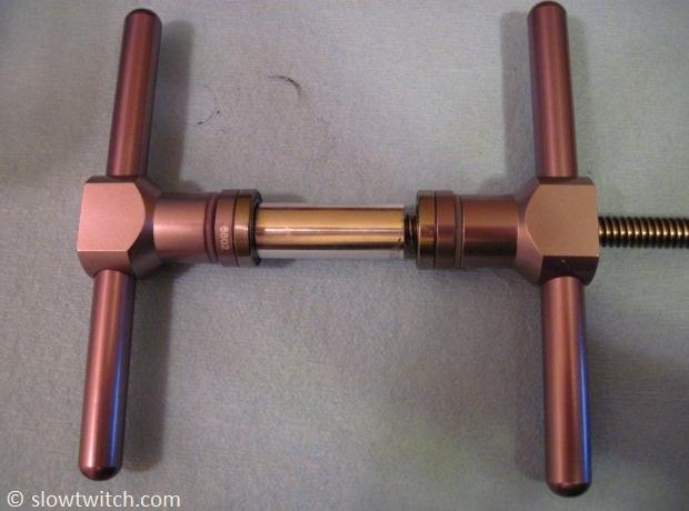There is a method to check whether you’ve pressed the bearings in correctly. Remove the bearing press and check the tube spacer. If it is loose and flops around easily, the bearings need to be pushed in tighter. If the spacer is clamped in place super tight (i.e. it’s immobile), the bearings were smashed in too tight. You should be able to move the spacer around with your fingers using a moderate amount of effort.