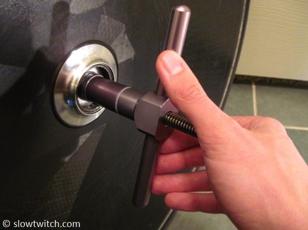 Turn both handles slowly until you feel the bearings bottom out.