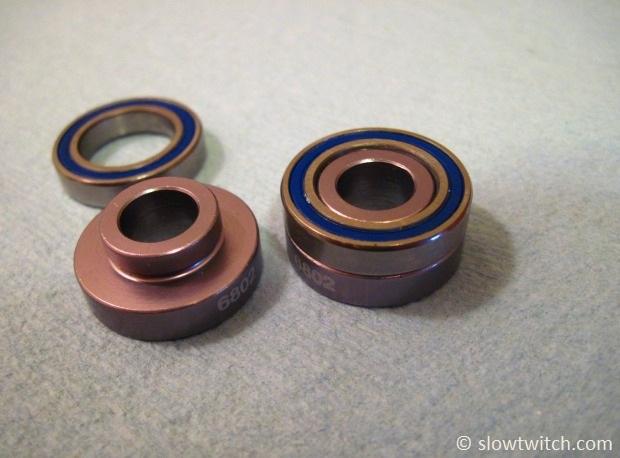 How hard should you press the bearings in? I go just until they stop, then snug them down a tiny bit. That’s all. If you press them in too hard, you risk damaging the bearings with too much preload.