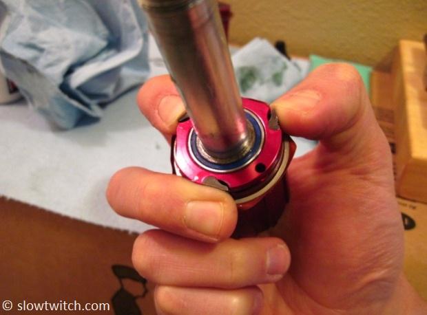 Next, thread the non-drive side end cap back on. The official tightening torque is 88 in/lbs. If you don’t have a torque wrench, it’s about a 7.5 out of 10 – definitely snug, but not super-duper tight.