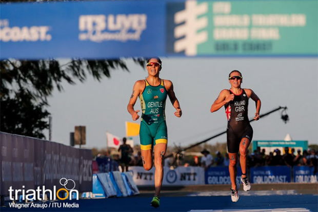 “I can’t believe it,” Learmonth told ITU media. “The swim went well, and then on the bike we worked really well together. I thought everyone was with me, so I just got my head down and went for it. Then on the run I was trying to keep up with Katie but then at some point she went off and I couldn’t keep up.”