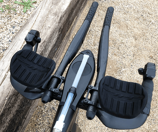 SRAM also introduced MultiClics, and while this is not strictly a tri or TT product, it can be used as such, and when I built up this QR I put the MultiClics on there. I have a bit of experience with shifters at the pursuit bars, and what I’ve learned is that I’m prone to the inadvertent shift. When you put shifters anywhere around my hand position in the pursuits, sure as shootin’ I’ll rub up against that button and shift the bike, always at an inopportune time. I need that shifter button where I can reach it, but it can’t be adjacent to where my hand is. The MultiClic is designed to be placed under the handlebar tape (on the "tops" position on road and gravel bikes, and on the pursuits for tri and TT). On the tri installation that SRAM uses in its pics of this product, that’s where it is. And it’s right where my hands go. No can do for me.
