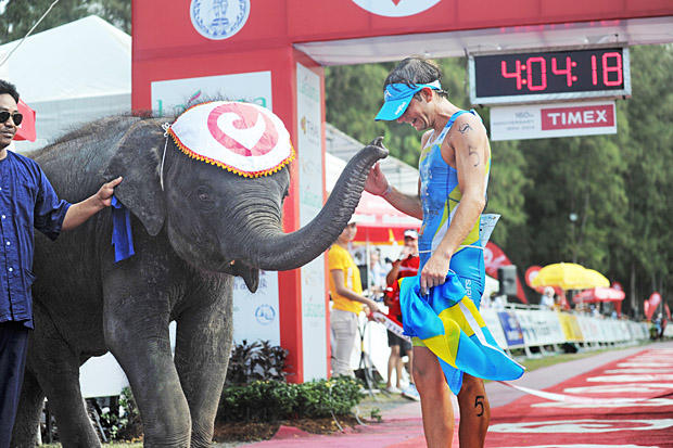 In 107.6 degrees Fahrenheit heat and over 90 percent humidity, riding a bike course with viciously steep hills, Ruedi Wild and Melissa Hauschildt won Challenge Laguna Phuket.