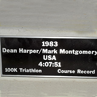 To celebrate the 30th anniversary of his Wildflower triathlon, Terry Davis erected a Stairway of Champions with plaques honoring all long course winners. On the 1983 men’s plaque, there was a surprise addition.