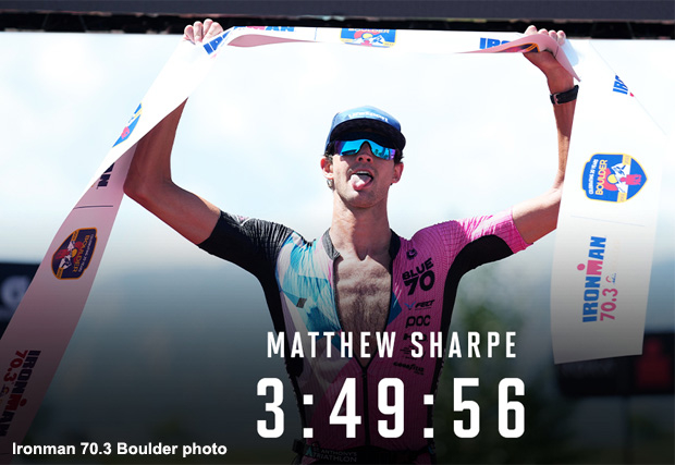 Canadian Matthew Sharpe edges Justin Metzler by 51 seconds; Rach McBride’s top bike split leads them to IM 70.3 Boulder win.