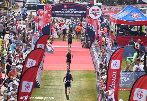 Dani Fischer, 34, of Greenfield, Indiana and Matthew Guenter, 25, of Boulder, Colorado took the overall titles at the USAT Olympic Distance Age Group Nationals in Milwaukee.