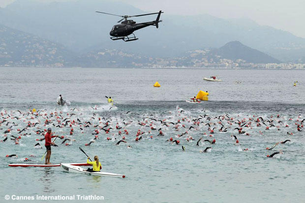 Leanda Cave outswam Alexandra Tondeur and Etienne Diemunsch outran Giulio Molinari to win the middle distance Cannes International Triathlon Sunday on the French Riviera.