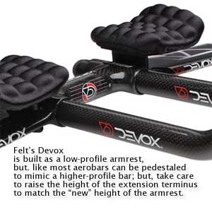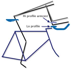 So, imagine the rider who rides only mid-steep, and who's got very long legs versus his torso. He's a fitter's nightmare, for two reasons: He's going to need a narrow/tall bike mated with a high-profile aerobar, and he's going to have a devil of a time not hitting the backs of his armrests with his knees.