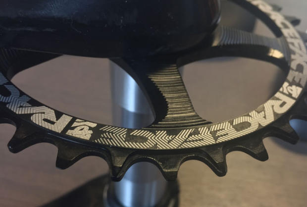 At a minimum narrow-wide (the technology SRAMS X-Sync rings use) chain rings are made by Wolf Tooth, 1 up, Rotor, Race Face, AbsoluteBLACK and Osymetric, as well as all the companies I don’t know about that’re making them. You can see Race Face’s immediately below.