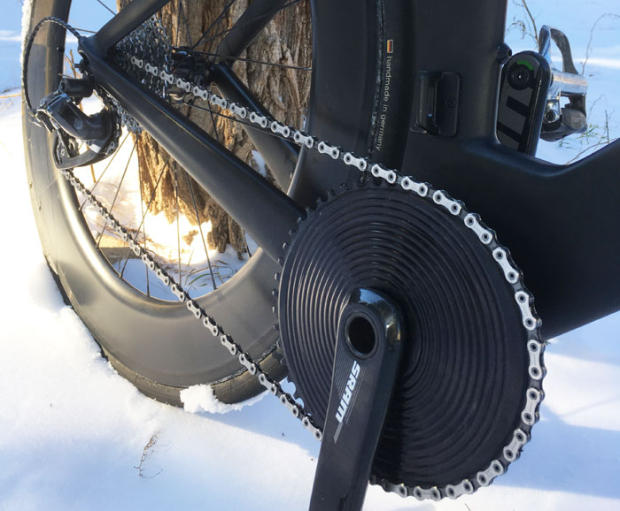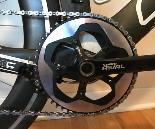 There is another issue, which is, what if you’re also infatuated with the notion of non-round rings? There is no oval X-Sync ring. That leaves Rotor, Osymetric and AbsoluteBLACK, the last of which is direct mount (shown above). Again, we come to function. Does AbsoluteBLACK's ring allow you to ride a desirable torque profile? Don’t know. Just note that changing the orientation of the ring around the face of the pedal circle is Rotor’s patent (it’s the only oval ring that offers this). Is this important? Here’s my rhetorical question to you: Is your saddle setback the same on both your tri and road bike? Do you ride knee-over-pedal-spindle on your tri bike? (I hope not!) My point: Is your torque profile the same whether you ride road or tri and, if not, which torque profile are the other rings optimized for: road or tri?