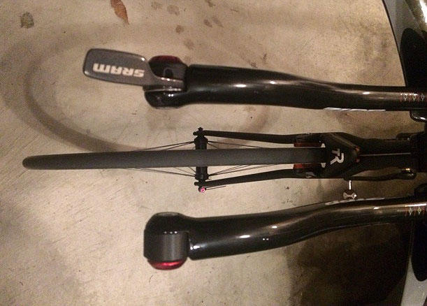 I would like to see SRAM consider making two new products. First, a higher-end 11sp cassette in 11-40 or 11-42. Second, SRAM or somebody ought to make a shift system that looks better than an aerobar that has suffered an amputation (just above). I actually like the idea of SRAM’s old, ancient twist shifters, one of which would function the other just a dummy, rather than the orphaned paddle shifter we now see.