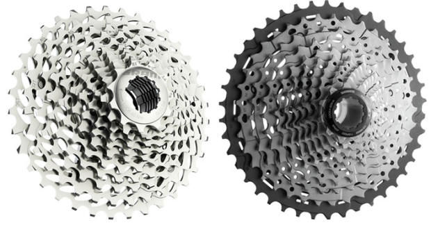 SRAM makes an 11-42, in the Apex line, kind of heavy, kind of down-spec, but it’s available. Shimano makes a higher-end 11-42 that’s perfectly compatible with the rest of SRAM’s 1x drivetrain, and it makes an 11-40 as well (above right). The rollout of that 50×42 is short, about 31 gear inches. In fact, you could move up to a 53t front ring and have the exact same small gear as a 34×27. For those who want a cassette for all occasions, these Shimano cassettes are the way to go.
