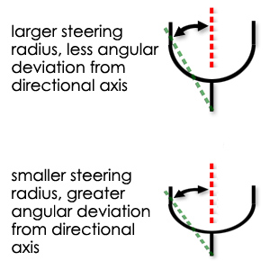 I'm out of my depth here when trying to describe the mechanics I write about below. There is an angle formed by the bike's directional axis (when the bike points straight ahead) and a line that represents the steering lever. I think that angle can be too acute. I think that in severe cases—speed wobble, U-turns, and surprise emergency maneuvers—the lack of a sufficiently-sized angle (I haven't yet named this angle; perhaps it already has a name and I just don't know it) might be a problem.