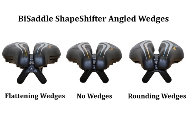 In its stock form, the ShapeShifter is on the flatter end of the spectrum. If you’d like to change this shape, BiSaddle includes two sets of angled wedges – one set that flattens the saddle further, and one set that makes it more rounded.