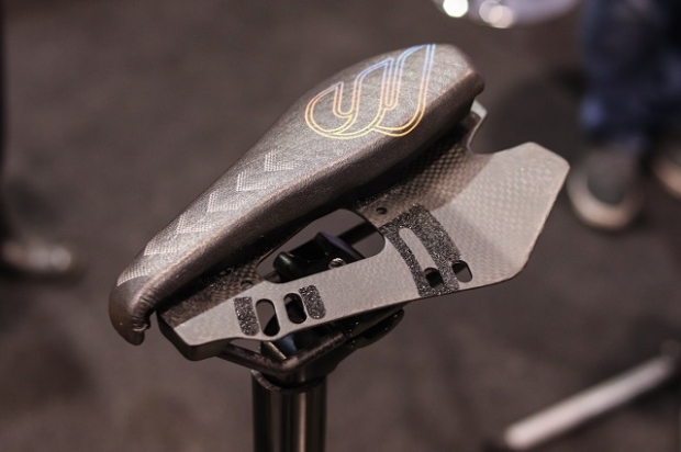 BiSaddle also showed a prototype full-carbon version of the saddle, which they say is made right alongside their other products in their Utah factory. It has a carbon base, carbon rails, and an estimated 90 gram weight savings (price TBD):