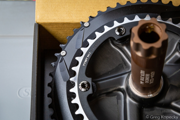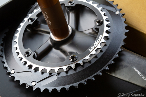 Chainring sizes are perhaps the largest sticking point for TT-style cranks and rings. It’s a big part of why they have struggled to catch on en masse. Originally, you could only find them in huge ring sizes – 54, 55, or 56 teeth for the large ring, and 42 or 44 for the small ring. Eventually manufacturers got with the times and started offering the then-standard 53/39 size. Happily, Vision offers this size for the Metron – and this is how we spec’ced our test crank.