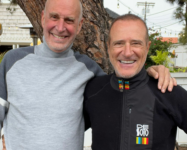 I went down to see my friend Emilio De Soto last week, and brought a box of saddles with me. While I would understand if you misidentified these two distinguished gentlemen below as Pierce Brosnan and George Clooney, in fact it’s a pic of Emilio and me at our lunch spot last week. When I left my everyday gig as a wetsuit maker to begin my 24-year odyssey here at the site you’re reading, Emilio took up the mantle of U.S.-based manufacturer of triathlon wetsuits.