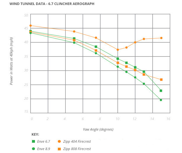 Can I really validate their statements? Sorry, but the closest I can get to a wind tunnel is a box fan and smoke machine in my garage. I can, however, supply you with the aero charts from Enve, seen here: