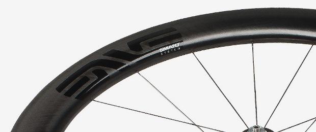 “The Smart ENVE System optimizes the interface between the frame surfaces and the wheels, creating an integrated system. The front and rear wheels interact differently with the air and the rest of the bicycle. Rim shapes are optimized to allow airflow to stay attached at higher yaw angles, thus reducing drag and improving ride performance.”