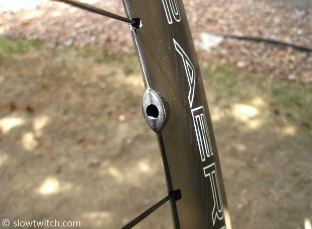 The Reynolds AERO wheels have internal spoke nipples that require a 5.0mm hex socket. Reynolds says that internal nipples are a must on these wheels due to the sharp edge of the rim.