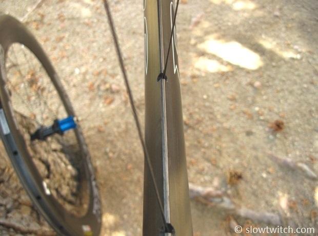 I also noticed that the rear wheel had come out of true, and about 1mm out of dish after a couple rides. It wasn’t a great deal out of true, but was certainly noticeable to the eye. I also wondered if this contributed to the brake howl and vibration. Unfortunately, I only own a 5.5mm hex driver for deep rims, not the 5.0mm required for these wheels. Reynolds arranged for me to send the rear wheel back to them for inspection and repair, and I had it back in my hands in about two weeks. Since that time, the wheel has stayed perfectly in true and the braking has been quiet.