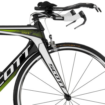 Here's a clue for you to ponder: The Plasma 3 bikes—both the TT and the Premium—come with two stem length options: 75mm and 90mm. Pretty short, right? Scott has correctly discerned something: You need to ride shorter stems on tri bikes than you do on road bikes. So, don't necessarily choose your Plasma 20 with the stem factory spec'd. If it comes with (say) a 100mm or 110mm stem from the factory, you might be better off with an 80mm or 90mm stem on a frame the next size larger. That'll grant you more frame, less spacer, less stem, less headset top cap, and your Plasma 20 will fit you like the Plasma TT bike fits many of the Team HTC Columbia riders.