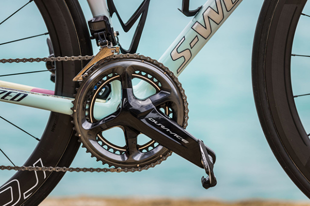 Flora Duffy rides 165mm Shimano Dura-Ace cranks with a 53-39 chainring combo and Shimano pedals.