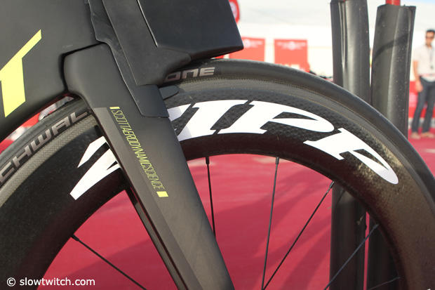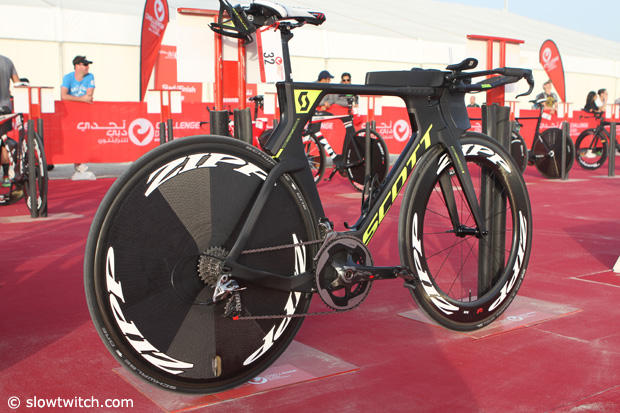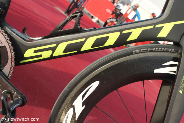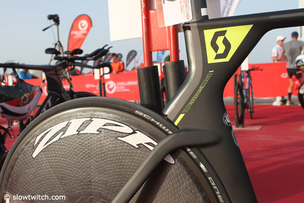 Scott Sports enlisted the talented young German Maurice Clavel to represent and race for them, and at Challenge Dubai we grabbed his Scott Plasma 5 to take a closer look. Although officially new to Scott, Clavel is very familiar with the brand as he trains under Lubos Bilek who also coaches Sebastian Kienle, and last year rode one of Sebi's older Scott race bikes.