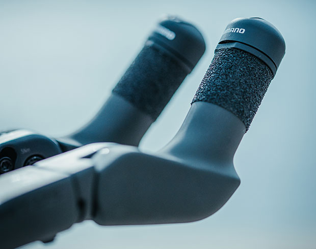 Let’s talk about the cockpit for a minute because Scott operates like Trek in that it closely works with and relies upon its accessories division for peripherals. A Trek Speed Concept uses bars made by Bontrager and Scott relies on its sister brand Syncros. In this case Syncros makes integrated cockpits for road and tri called Syncros Creston IC and that’s what we’ve got here. As we see, it can be adjusted extremely narrow in the armrests and narrower is what we’re beginning to see in tri in the pro ranks.