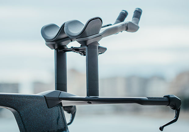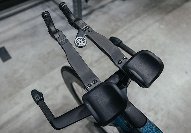 It can also be adjusted wide, up, down, tilted and so on. Adjustment was a premium in the design of this new Plasma and it’s not hard to see why: At its beginning the Plasma has been one of the least adjustable tri bikes, specifically in fore/aft. The first high end Plasma Premiums had literally no adjustment in the lateral plane, other than moving the pad brackets to fore and aft holes. How far the Plasma has come!